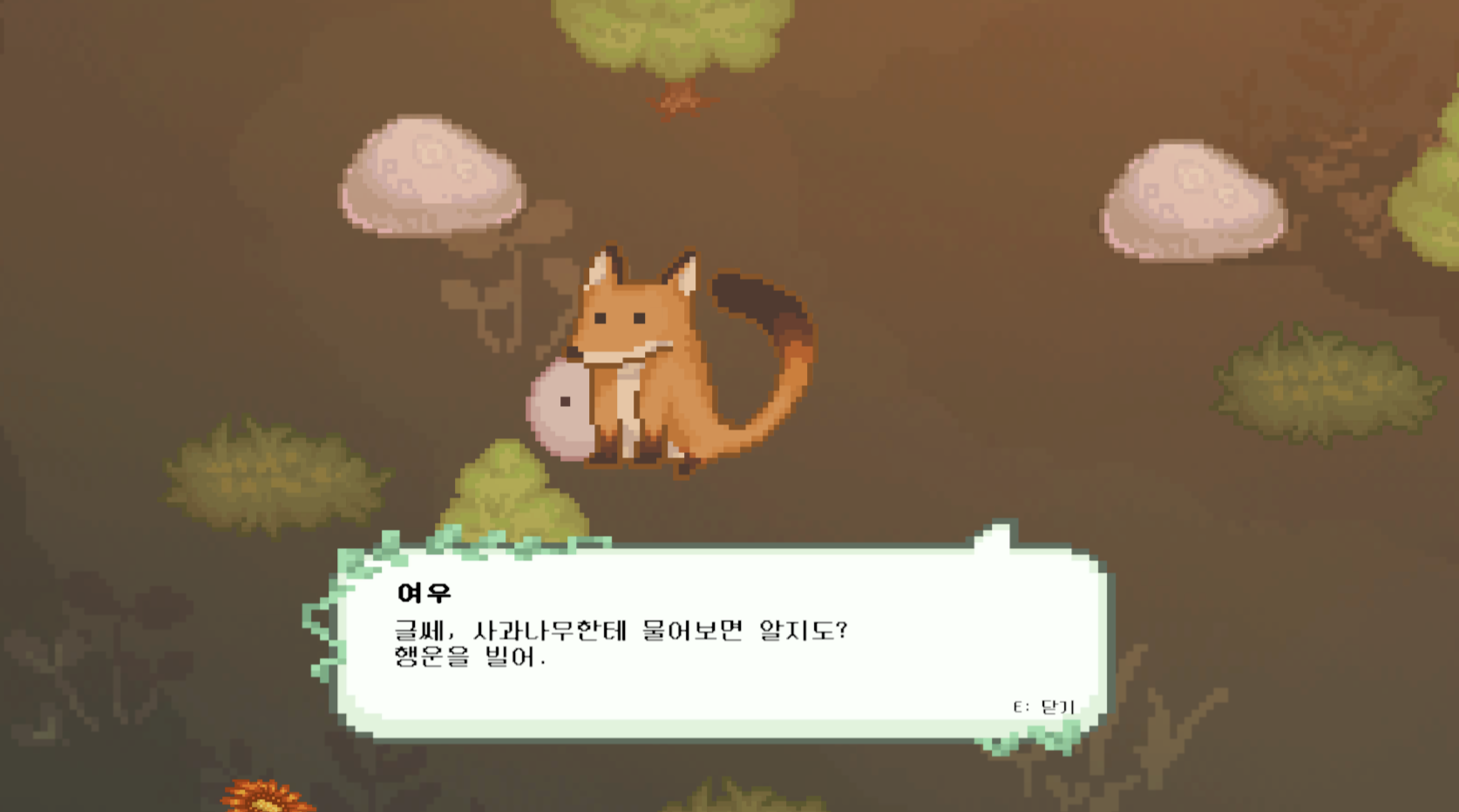 여우, 나비, 말하는 사과나무와 대화해서 아이템의 위치를 찾아보자.